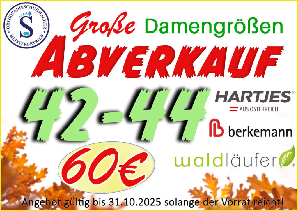 Abverkauf große Damengrößen – Hartjes, Berkemann, Waldläufer Beschreibung: 👠 Nutzen Sie die Gelegenheit und stöbern Sie in unserem Abverkauf für große Damengrößen der Marken Hartjes, Berkemann und Waldläufer! Jedes Paar ist sorgfältig ausgewählt, um Ihnen den Komfort zu bieten, den Sie verdienen. Aber beeilen Sie sich – das Angebot gilt nur bis zum 31.10.2025 und solange […]